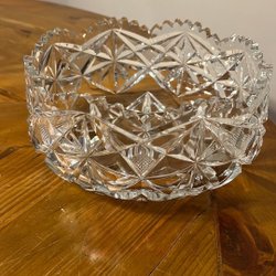 Vacker kristallskål med fint slipat mönster. Perfekt för servering av frukt, godis eller som en vacker dekoration.