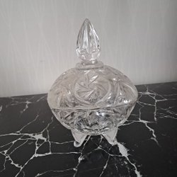 Skål med fin mönster stjärna i botten och spetsat. Lagom till godissklål. Höjd 10,5 cm. Inga defekter.