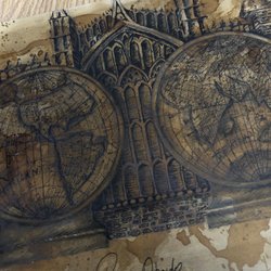 På ena sidan strålar en kunglig elegans – reliefaktiga former i ädelmetall, en ram som minner om storhet och majestät, pigment som glittrar lik guld i ljuset.