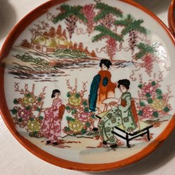 En vacker japansk teservis med detaljerade illustrationer