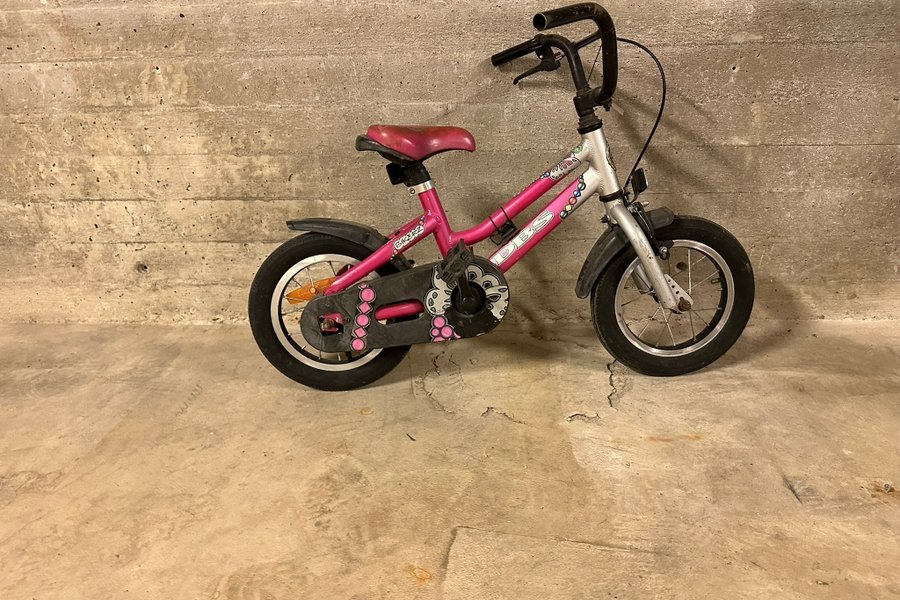 Begagnad DBS barncykel i rosa färg, 12 tum.
