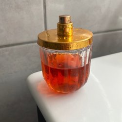 En parfymflaska, 100ml, 3.3 fl.oz. Perfekt för samlare eller för den som vill fylla på sin favoritdoft. Vet ej va det är för parfym. Ungefär 5ml kvar. Inte ny så kan skilja sig i doft jämfört med en helt ny. Repig och några hack.