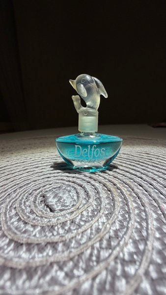 En vacker parfymflaska från Delfos. Flaskan har en unik design med en delfin som pryder toppen.