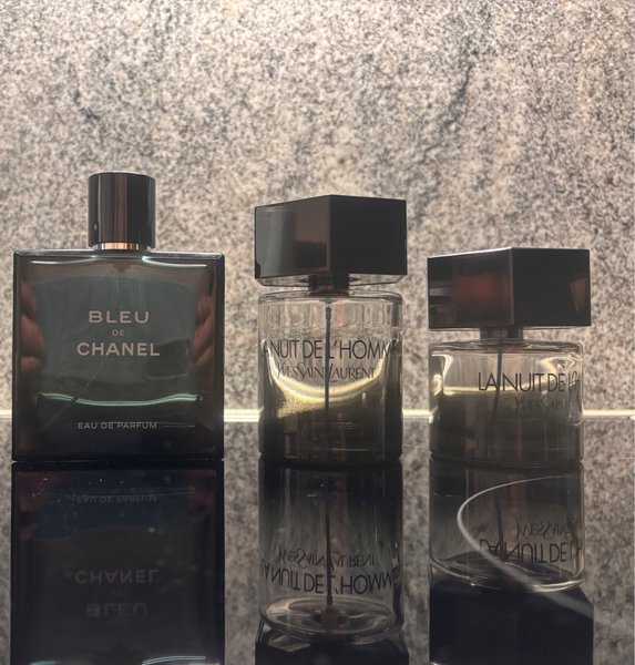Obs: Tomma parfymflaskor Bleu de Chanel Eau de Parfum, och Yves Saint Laurent La Nuit De L'Homme 60ml och 100ml
