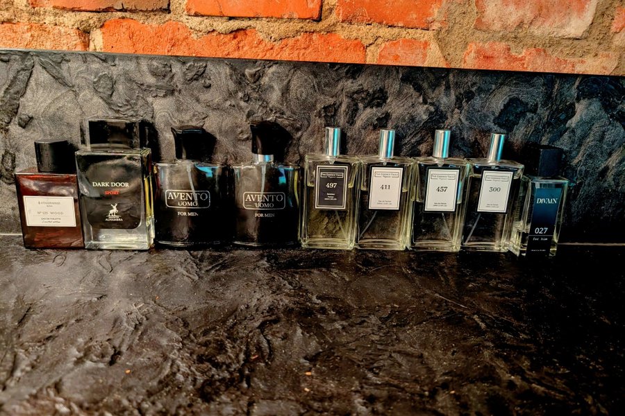 "N° 125 Wood" från Stradivarius, "Dark Door Sport" från Maison Alhambra, två flaskor "Avento Uomo", samt "The Essence Vault" i dofterna 497, 411, 457 och 300 och"Divain 027 for him".