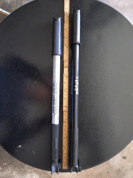 2 stycken cykelpumpar varav den ena är en SKS Super Corsa, Tyskland och den andra en Zefal 3. Längd cirka 51 -53 cm.