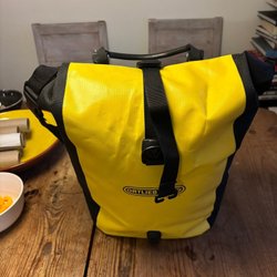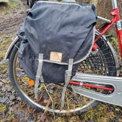 En praktisk cykelväska i canvas med detaljer i läderimitation. Perfekt för pendling eller cykelturer.
