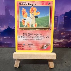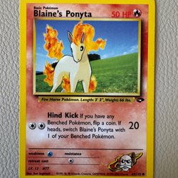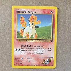 Säljer ett Pokémonkort av Blaine's Ponyta. Ett samlarobjekt för Pokémon-entusiaster.