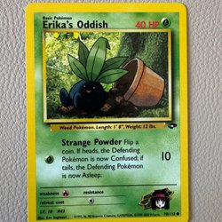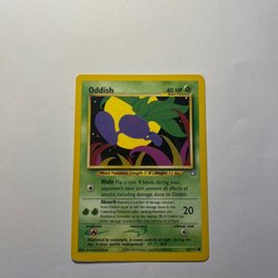 Ett Pokémonkort med Oddish. Den har attackerna Sleep Powder och Poisonpowder. Kortet är nummer 63/82.