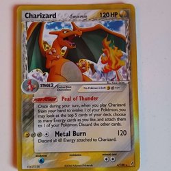 Säljer ett Charizard Delta Species Pokémonkort. Kortet är från 2006 och har numret 4/100.