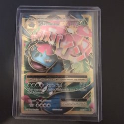 Ett sällsynt M Venusaur EX Pokémonkort. Kortet har attacken Crisis Vine som gör 120 skada och paralyserar och förgiftar motståndarens aktiva Pokémon.