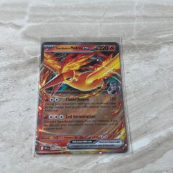 Sælg et Pokémonkort med Team Rocket's Moltres EX. Kortet har angrebene Flame Screen og Evil Incineration.