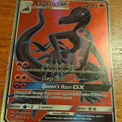 Säljer ett Pokémonkort av Xurkitree, ett Ultra Beast. Kortet har attackerna Three Mirrors och Signal Beam. Se bild för detaljer.