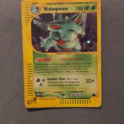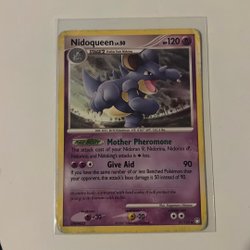 Säljer ett Pokémonkort av Nidoqueen. Drill Pokémon, längd 3", vikt: 132 lbs. Den har attackerna Boyfriends och Mega Punch.