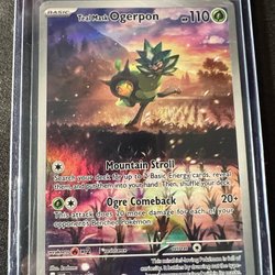 Säljer ett Pokémonkort av Teal Mask Ogerpon. Perfekt för samlare och spelare!