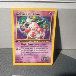 Säljer ett Espeon Pokémonkort. Kortet är av typen Stage 1 Pokémon. Den har attackerna Bite och Psychic.