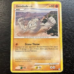 Säljer ett Pokémonkort av Geodude. Kortet är från serien och har attacken Stone Barrage. Perfekt för samlaren!