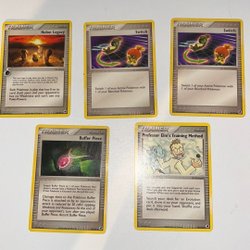 Säljer ett set med Pokémon tränarkort. Perfekt för dig som vill förbättra din samling eller bygga en starkare kortlek. Innehåller olika typer av tränarkort som kan hjälpa dig att vända striden till din fördel.