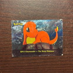 Säljer ett Pokémon-kort med Charmander från TV-serien, avsnitt 11: 'The Stray Pokémon'. Detta kort visar en scen från avsnittet där Charmander är övergiven och väntar på sin tränare.