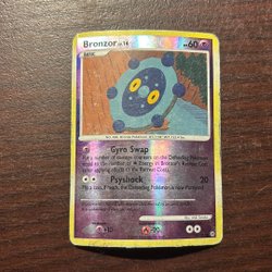 Ett Pokémonkort med Bronzor. Kortet är från serien Diamond & Pearl Stormfront och har nummer 55/100.