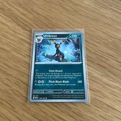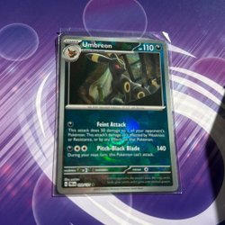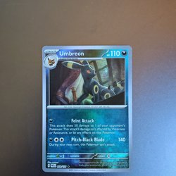 Ett Pokémonkort med karaktären Umbreon. Perfekt för samlare och spelare!