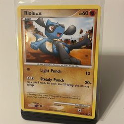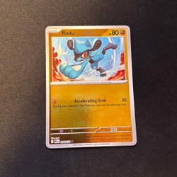 Säljer ett Pokémonkort av Riolu. Perfekt för samlare och Pokémon-entusiaster!