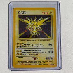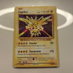 Säljer ett Pokémonkort med Zapdos. Kortet har attackerna Drill Peck och Lightning Wing. En legendarisk Pokémon som sägs leva i åskmoln.