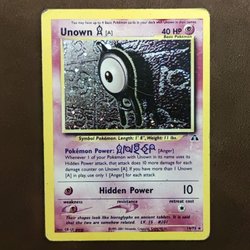 Säljer ett Pokémonkort från setet Neo Discovery, Unown [A] med nummer 14/75. Ett måste för samlaren!