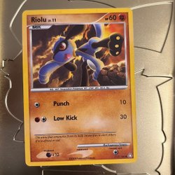 Säljer ett Pokémonkort av Riolu. Perfekt för samlaren eller Pokémon-entusiasten!