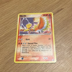 Säljer ett Pokémonkort av Ho-Oh. Kortet har attackerna Gust och Sacred Fire.