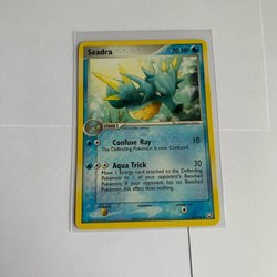 Säljer ett Pokémonkort av Seadra. Kortet är av typen Dragon Pokémon. Den har attackerna Water Gun och Agility.