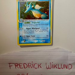 Säljer ett Pokémonkort, Kingdra EX. Perfekt för samlaren eller spelaren. Se bilder för detaljer.