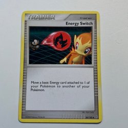 Ett Pokémonkort av typen Trainer, Energy Switch. Flytta en Basic Energy från en av dina Pokémon till en annan av dina Pokémon. Du kan spela valfritt antal Item-kort under din tur.