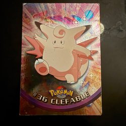 Säljer ett Pokémonkort av Clefable. Fairy Pokémon. Längd: 4' 3", Vikt: 88 lbs. En timid Fairy Pokémon som sällan syns. Den kommer att springa och gömma sig i samma ögonblick som den känner av människor. LV. 34 #36