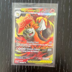 Mega Camerupt EX Pokemonkort med angrebene 'Abura Yaki' og 'Volcano Meteo'.