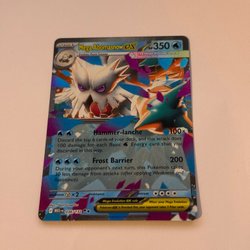 Säljer ett Mega Abomasnow EX Pokémonkort. Kortet är av typen vatten och har attacker som Hammer-lanche och Frost Barrier.