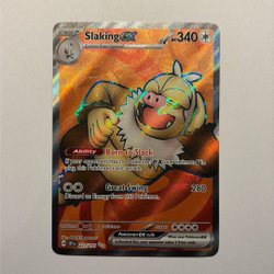 Säljer ett Slaking EX Pokémonkort. Perfekt för samlaren eller spelaren.