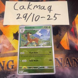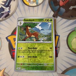 Ett Pokémonkort av Sawsbuck. Perfekt för samlare och spelare.