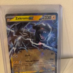Säljer ett Pokémonkort av Zekrom EX. Kortet har attackerna Slash och Voltage Burst. När Pokémon EX blir utslagen tar motståndaren 2 priskort.