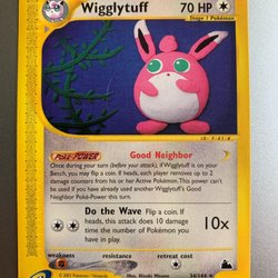 Ett Wigglytuff Pokémonkort. Kortet har nummer 32/64.