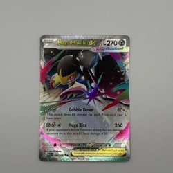 Pokémonkort från serien Mega EX. Kortet visar Mega Mawile EX med HP 270 och attacker som Gobble Down och Huge Bite. Se bild för detaljer.