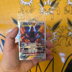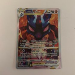 Säljer ett Pokémonkort av Lucario VSTAR. Perfekt för samlare och spelare!