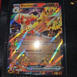 Pokémonkort av Blaziken ex. Stage 2, utvecklas från Combusken. Har förmågan Seething Spirit och attacken Sinolder-sault.