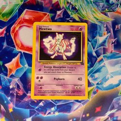 Pokémonkort av Mewtwo. Kortet är från 1999.