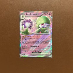 Gardevoir ex Pokémonkort med attackerna Psychic Embrace och Miracle Force.