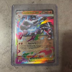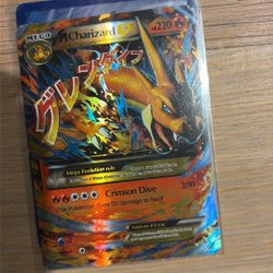 Ett Pokemonkort säljes. Kortet är Mega Charizard EX.