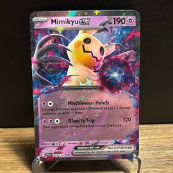 Säljer ett Pokémonkort av Mimikyu EX. Kortet kommer i ett skyddande fodral.