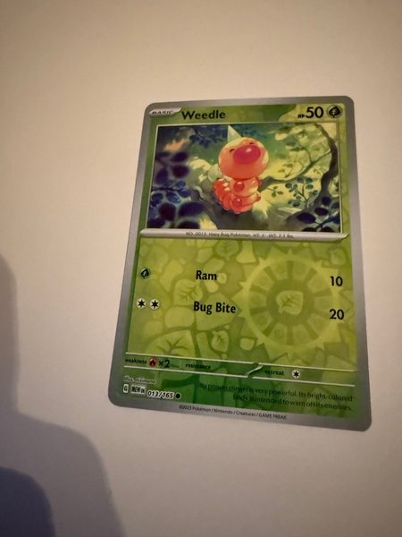 Pokémonkort av Weedle Kortnummer 13/165.
