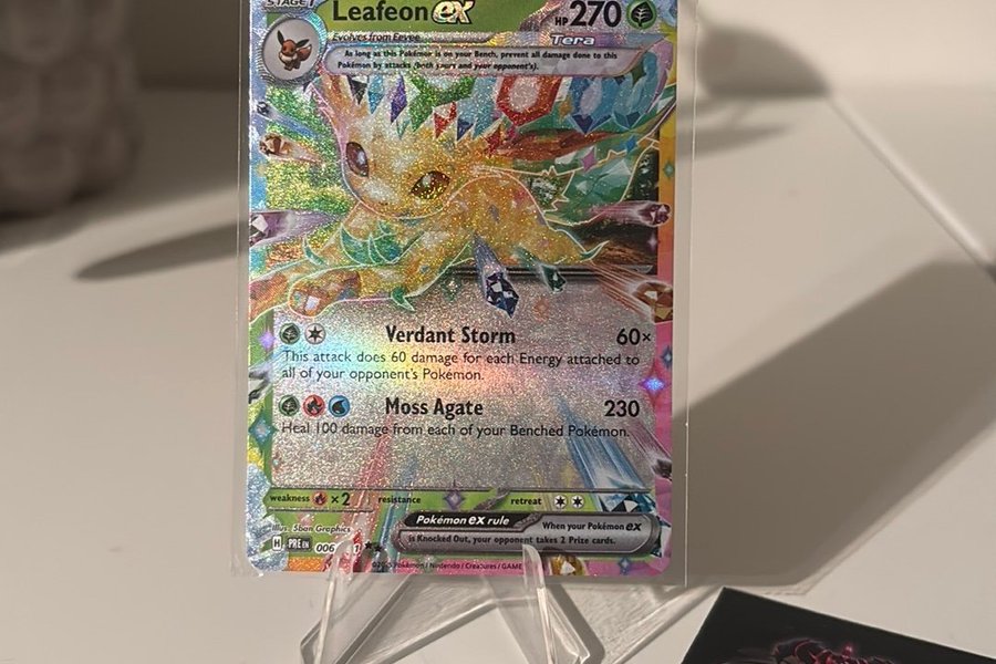 Leafeon EX, från Prismatic Evolution, direkt från pack till sleeve.