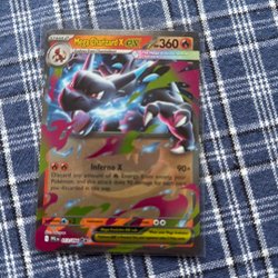 Et sjældent Mega Charizard X EX Pokemonkort. Perfekt til samlere og Pokemon-entusiaster.